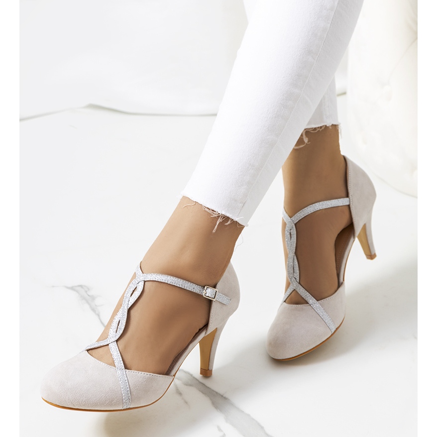 Detalhes: Sapatos cinza em um salto Luiken prata