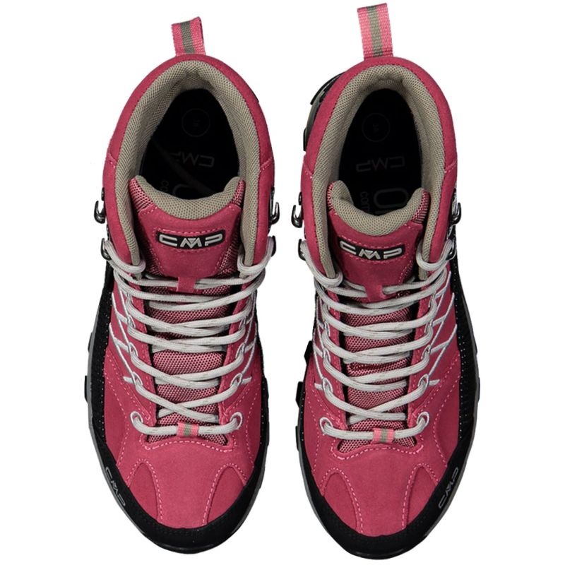 CMP Rigel Mid WP Shoes em 3q1294616hl - sapatos de trekking femininos que combinam força com conforto durante a exigência de vagar. O modelo vermelho/preto foi projetado para segurança em trilhas irregulares, detritos pedregosos e abordagens longas.