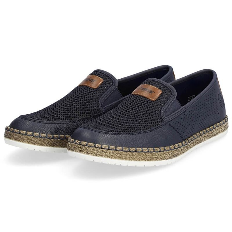 Detalhes: Sapatos confortáveis de couro Rieker M RKR656, azul marinho