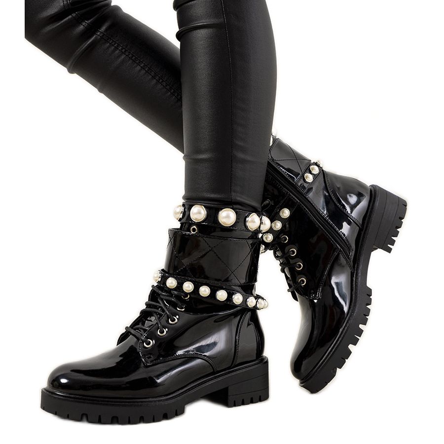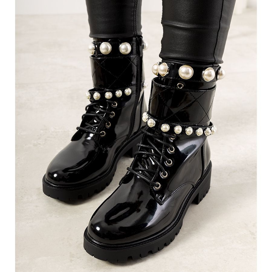 A sola alta trapper, decorada com listras decorativas e lindas pérolas, confere personalidade aos sapatos e faz com que combinem perfeitamente com os estilos de outono e inverno. O isolamento adicional em forma de pêlo curto garante conforto térmico mesmo nos dias mais frios.