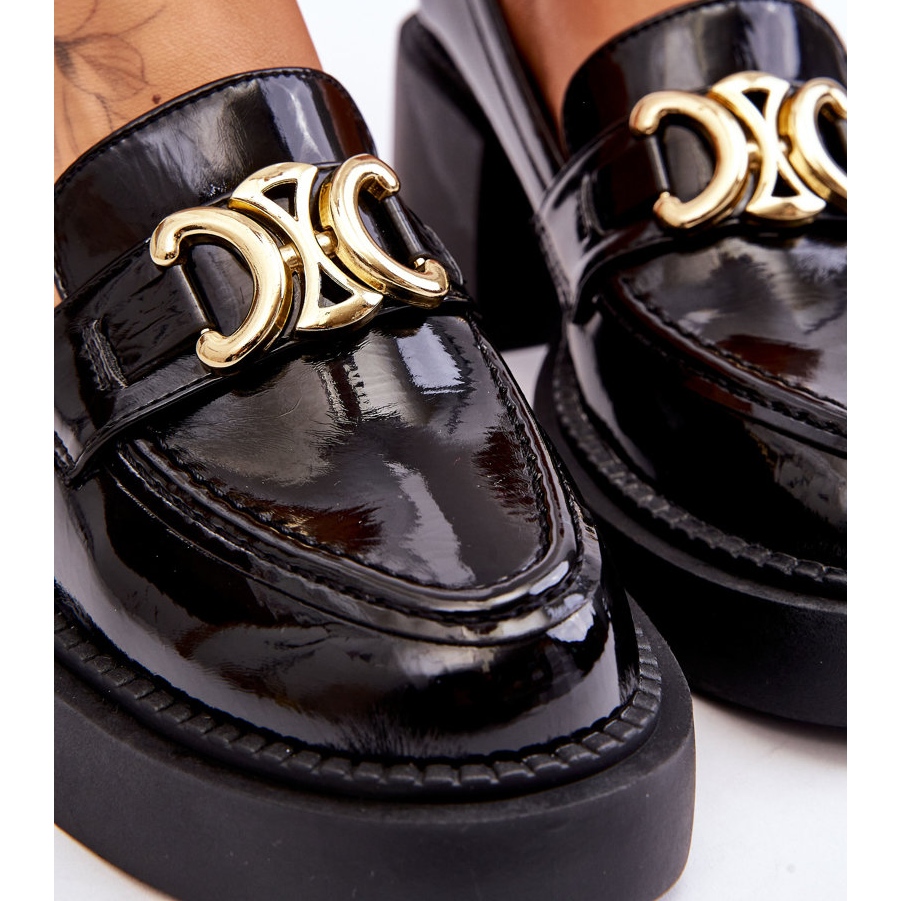Esses sapatos exclusivos são caracterizados por um salto bloco e uma plataforma adicional, que não só aumenta a altura, mas também garante conforto mesmo durante o uso durante todo o dia. Um enorme salto de 6,5 cm garante estabilização e equilíbrio da figura, e sulcos sutis na plataforma conferem ao calçado um caráter original.