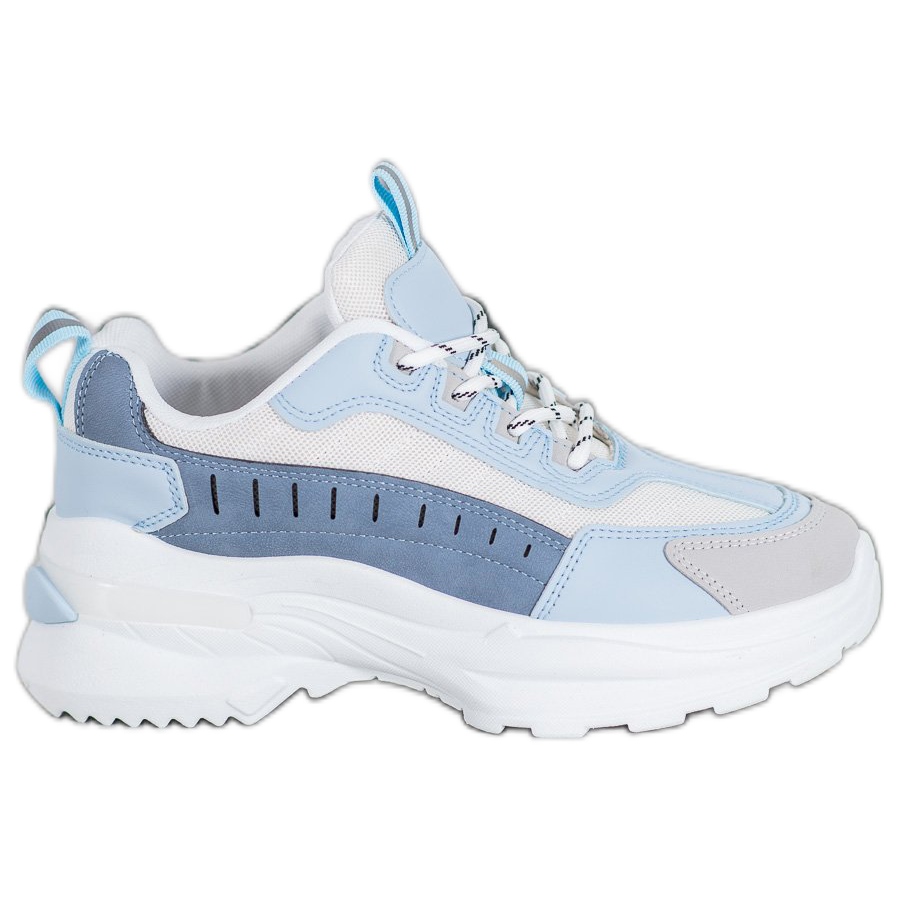 Apresentamos os modernos sapatos plataforma da marca SHELOVET, que aliam conforto e estilo. Estes sapatos azul-acinzentados-brancos são feitos de imitação de couro macio e materiais têxteis de alta qualidade, o que os torna extremamente confortáveis de usar. A plataforma alta, de 5,5 cm de altura, não só acrescenta elegância, mas também alonga perfeitamente a linha das pernas.