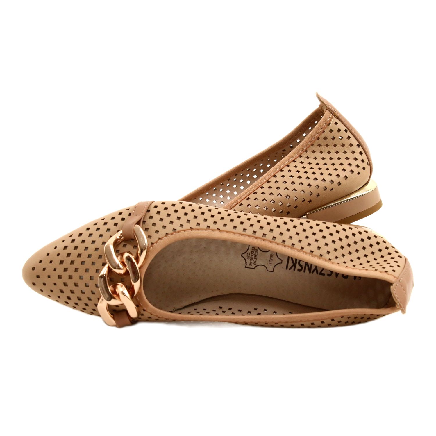 M.Daszyński M.Daszyński Sapatos de bailarina abertos com corrente Daszyński SA201-6 Bege-dourado