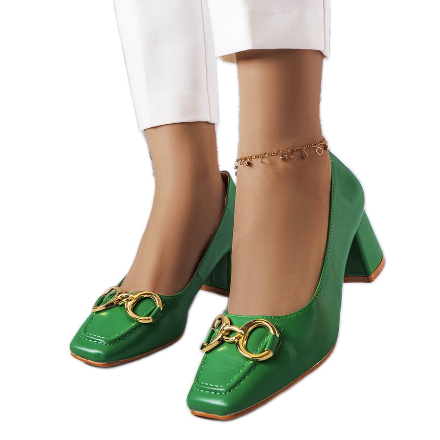 Confeccionados em couro ecológico liso, os scarpins se diferenciam por um extraordinário tom de verde que vai dar energia a qualquer estilo. Montados sobre um poste coberto de 5,5 cm de altura, tornam as pernas mais finas e garantem uma estabilidade adequada. O forro em couro ecológico e a sola em plástico oferecem conforto e durabilidade, perfeitos tanto para ambientes urbanos quanto para reuniões de verão.