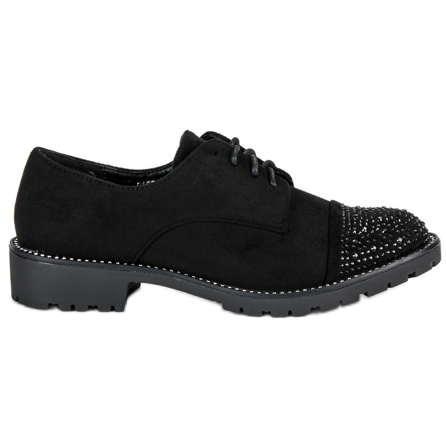 Este modelo combina design clássico com toques de moda - cristais atraentes são colocados no nariz e na parte superior da plataforma, o que lhes confere um caráter único. O salto plano de 3,5 cm de altura garante conforto e o fecho com cadarço permite um ajuste preciso do calçado ao pé.