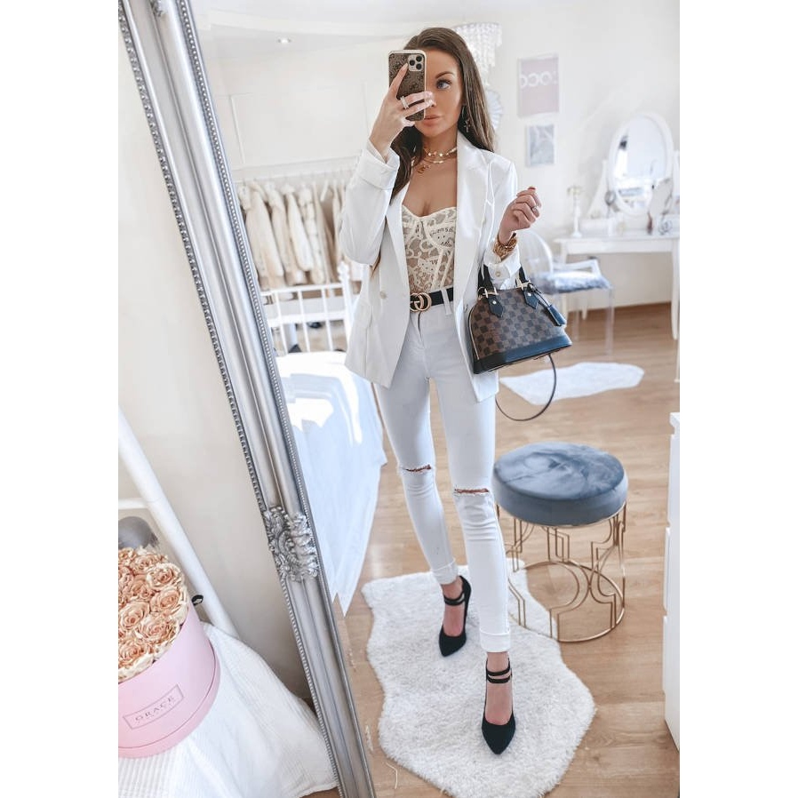 A altura do salto de 11 cm faz com que a figura pareça mais esguia e as pernas pareçam mais longas. Além disso, fitas elásticas costuradas no fecho garantem um ajuste perfeito, garantindo conforto de uso o dia todo.