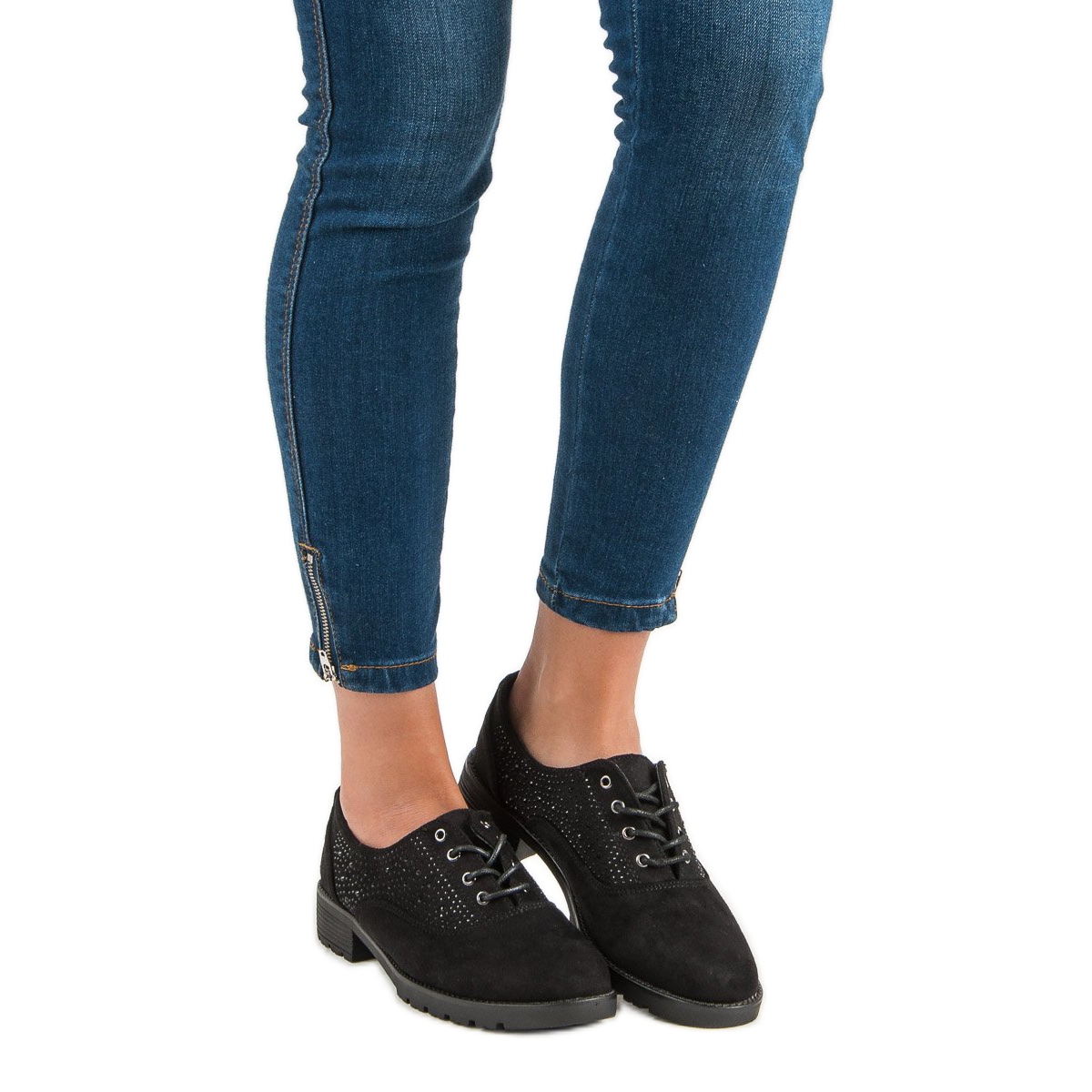 Os sapatos de camurça preta da marca Butymodne são obrigatórios no guarda-roupa de toda mulher. Seu design minimalista e elegante torna-os fáceis de combinar com uma variedade de estilos. Os strass que decoram a parte superior conferem-lhes carácter e a biqueira redonda torna-os muito confortáveis.