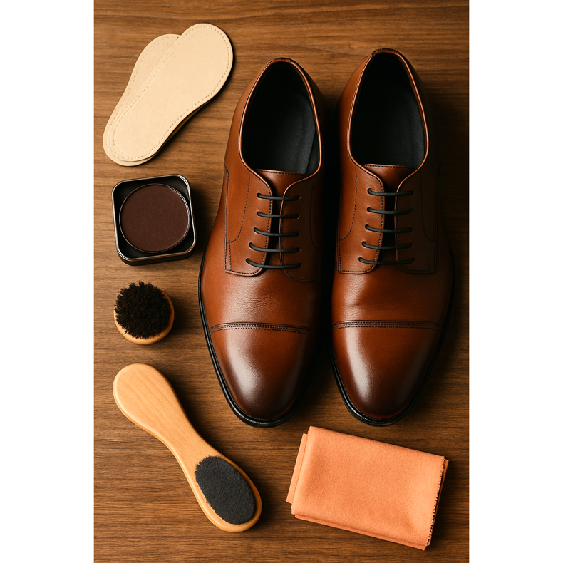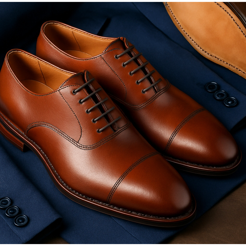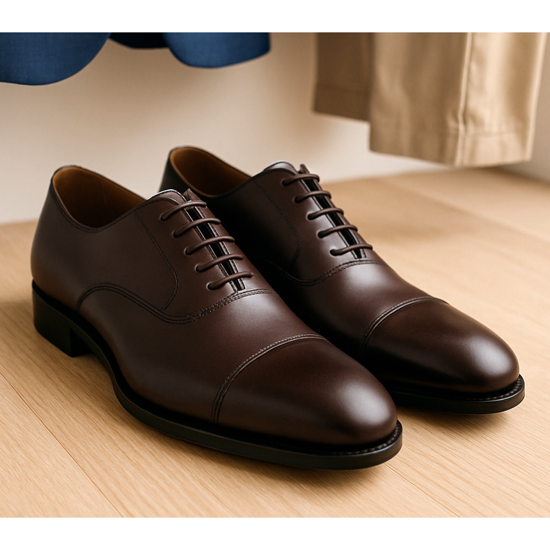 Para um casamento, escolha sapatos feitos de couro da mais alta qualidade - flor integral ou flor superior. O couro deve ser liso, sem defeitos visíveis e bem vestido. Evite couro com relevo que imita textura e couro ecológico - eles parecem baratos. A sola deve ser de couro ou borracha de alta qualidade (um pouco mais confortável). Verifique o acabamento: costuras uniformes, sola bem fixada pelo método Goodyear welted ou Blake. A parte interna do sapato deve ser de couro - proporciona melhor ventilação durante uma cerimônia longa.