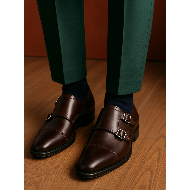 Monges, ou seja, sapatos com fivela em vez de cadarços, são uma alternativa moderna aos clássicos sapatos com cadarços. Monge único (uma fivela) é mais suave, monge duplo (duas fivelas) mais expressivo. Eles combinam perfeitamente com ternos modernos e justos em cores incomuns - azul marinho, vinho, verde garrafa. Monges em marrom escuro ou preto serão perfeitos para um casamento urbano, industrial ou glamoroso. Esta é uma escolha para homens autoconfiantes que querem se destacar com estilo e ao mesmo tempo manter a elegância.
