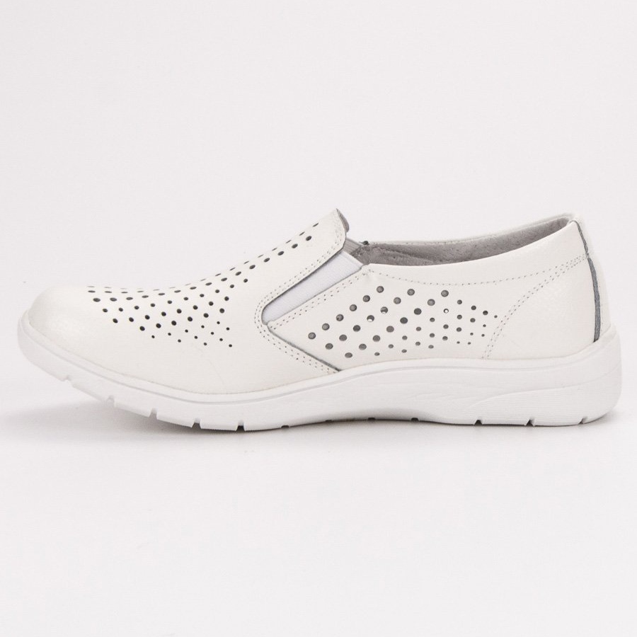 Descubra moda e conforto com os sapatos de couro branco da Kylie! Estes sapatos elegantes são a escolha perfeita para mulheres que desejam combinar estilo com conforto. Fabricados em couro natural de alta qualidade, distinguem-se por uma superfície perfurada que não só atrai os olhos, mas também garante um excelente fluxo de ar - perfeito para os dias quentes.