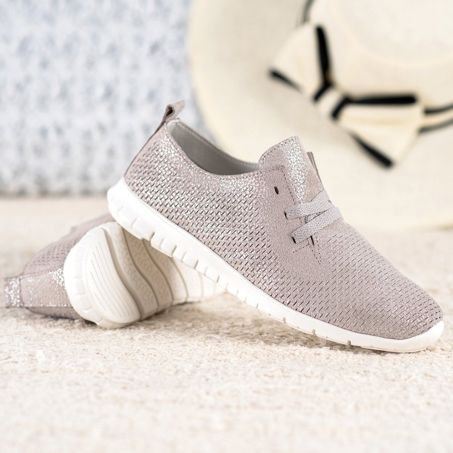 Os sapatos VINCEZA em couro com glitter na cor bege são uma excelente opção para mulheres que desejam aliar elegância ao conforto do dia a dia. Estes calçados elegantes distinguem-se não apenas pelo seu design único, mas também pelo acabamento sólido com materiais de alta qualidade. A parte superior em couro irá adicionar classe a qualquer estilo, e o brilho cintilante irá atrair a atenção e diferenciá-los de outros modelos.