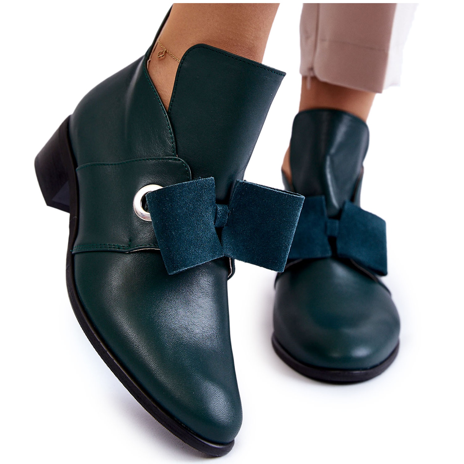 Elegante, confortável e universal - esses sapatos verdes são uma ótima opção diariamente e para ocasiões mais solenes. Feito de couro natural com atenção aos detalhes, com um arco decorativo de camurça na frente. Modelo escorregado, com uma estabilidade rígida que garante estabilidade ao caminhar.