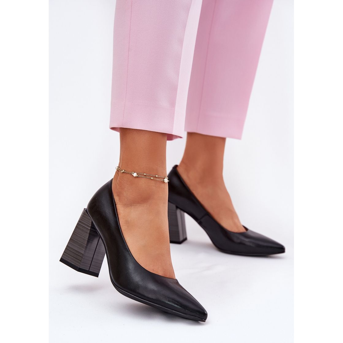 Detalhes: EVento Sapatos de couro com salto alto preto
