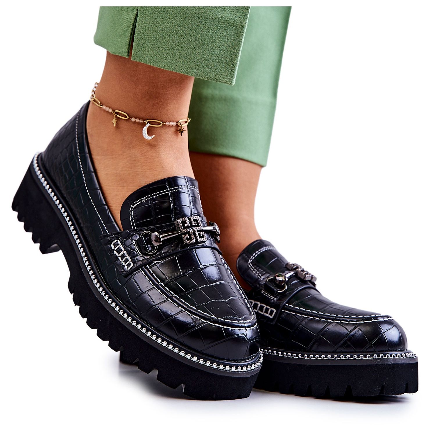 **Sapatos de couro de cobra com decoração, Adison preto da S.Barski**