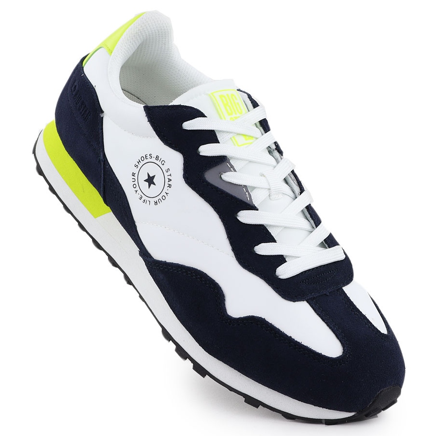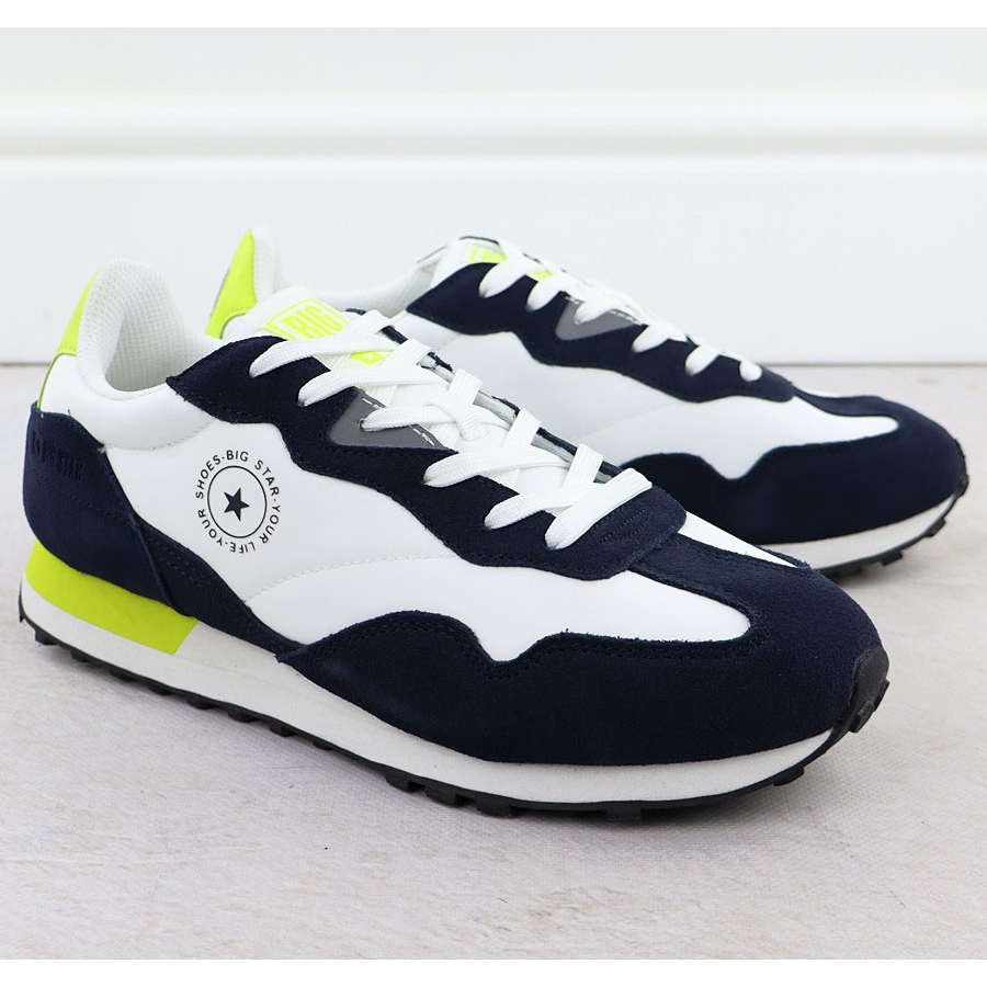 Big Star Sapatos de couro de couro masculino tênis brancos e azul marinho Big Star RR174408
