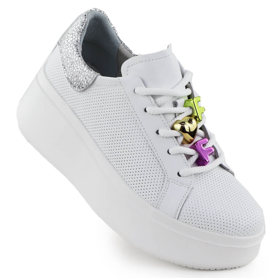 Detalhes: Sapatos de couro em uma espessa perfuração perfurada Filippo DP6793 branco