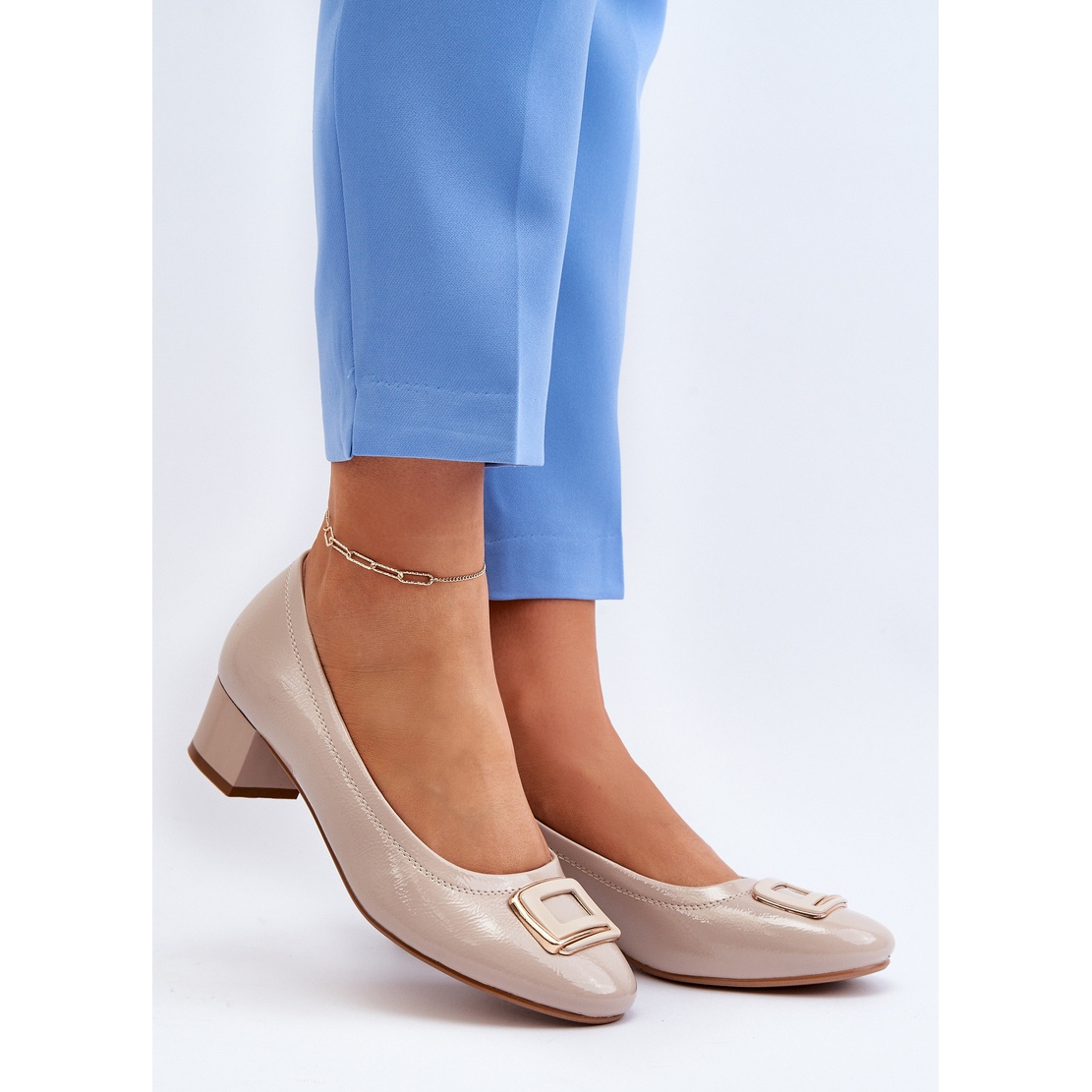 Detalhes: Vinceza Sapatos de couro envernizado em bloco com decoração, Bege Enollia