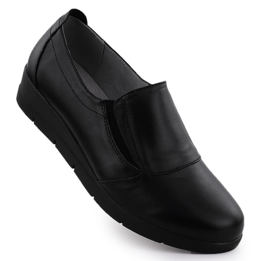 Apresentamos sapatos de couro feminino na cunha Sabatina Jhy JHY203, que será um complemento perfeito para o seu guarda -roupa. Esses elegantes sapatos pretos são distinguidos não apenas pelo design elegante, mas também com várias soluções funcionais que garantirão o conforto de usar o dia todo.