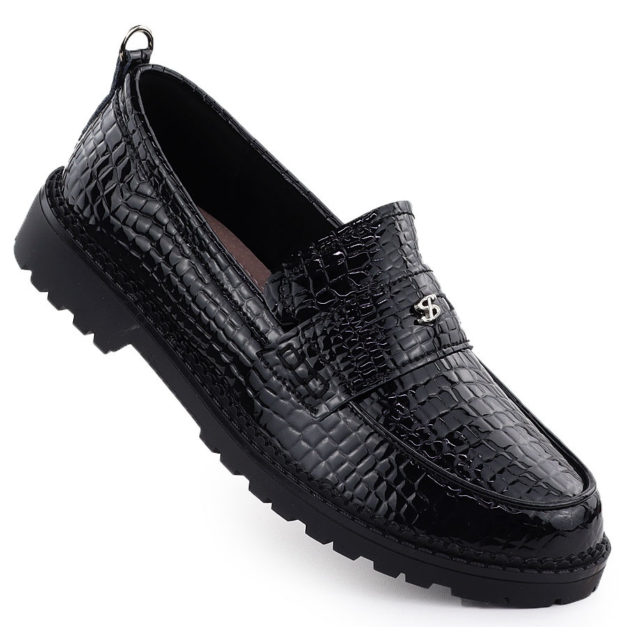 Detalhes: Sapatos de couro feminino mocassins envernizados Kroko Black Filippo DP7409