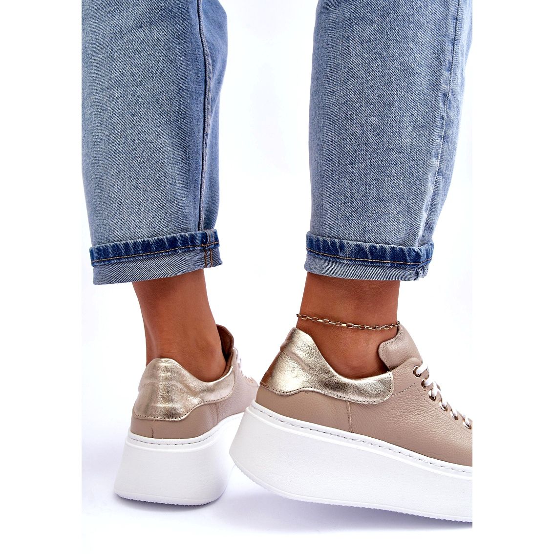 Detalhes: Lemar Sapatos de couro feminino na plataforma bege