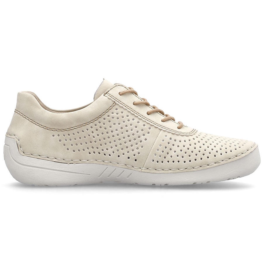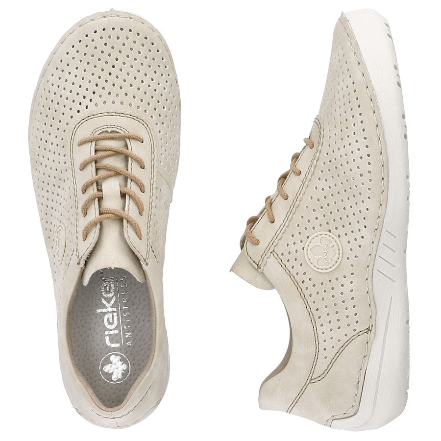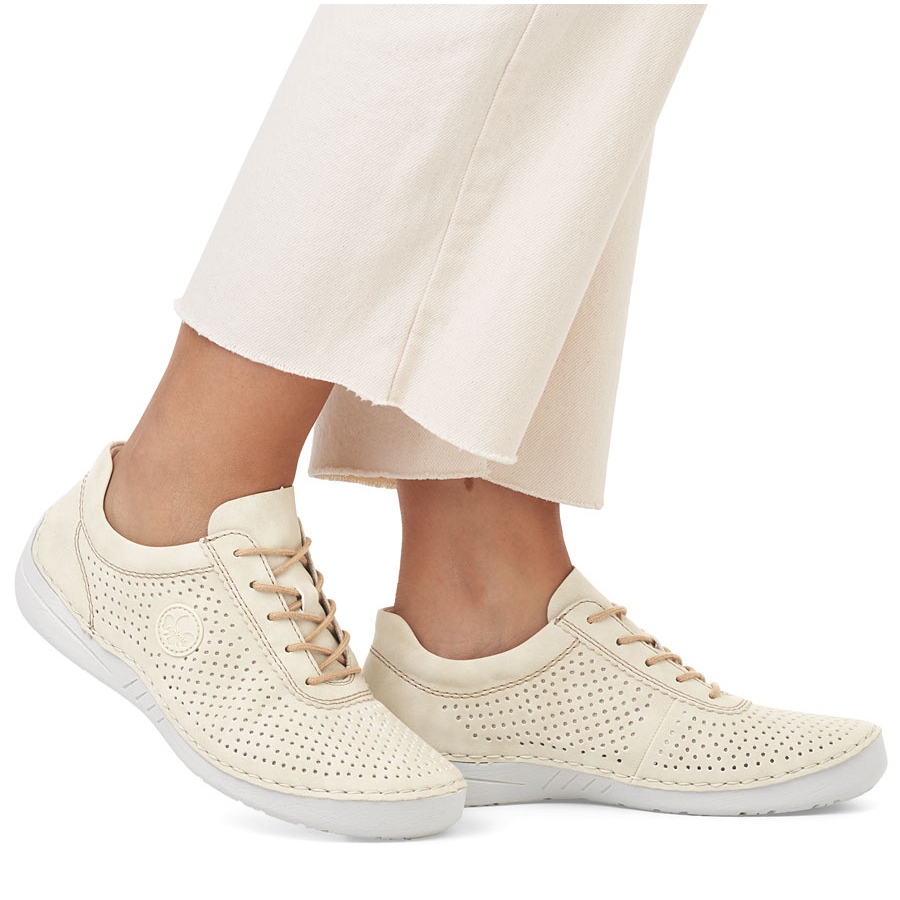Detalhes: Sapatos de couro feminino perfurados bege rieker 52546-60