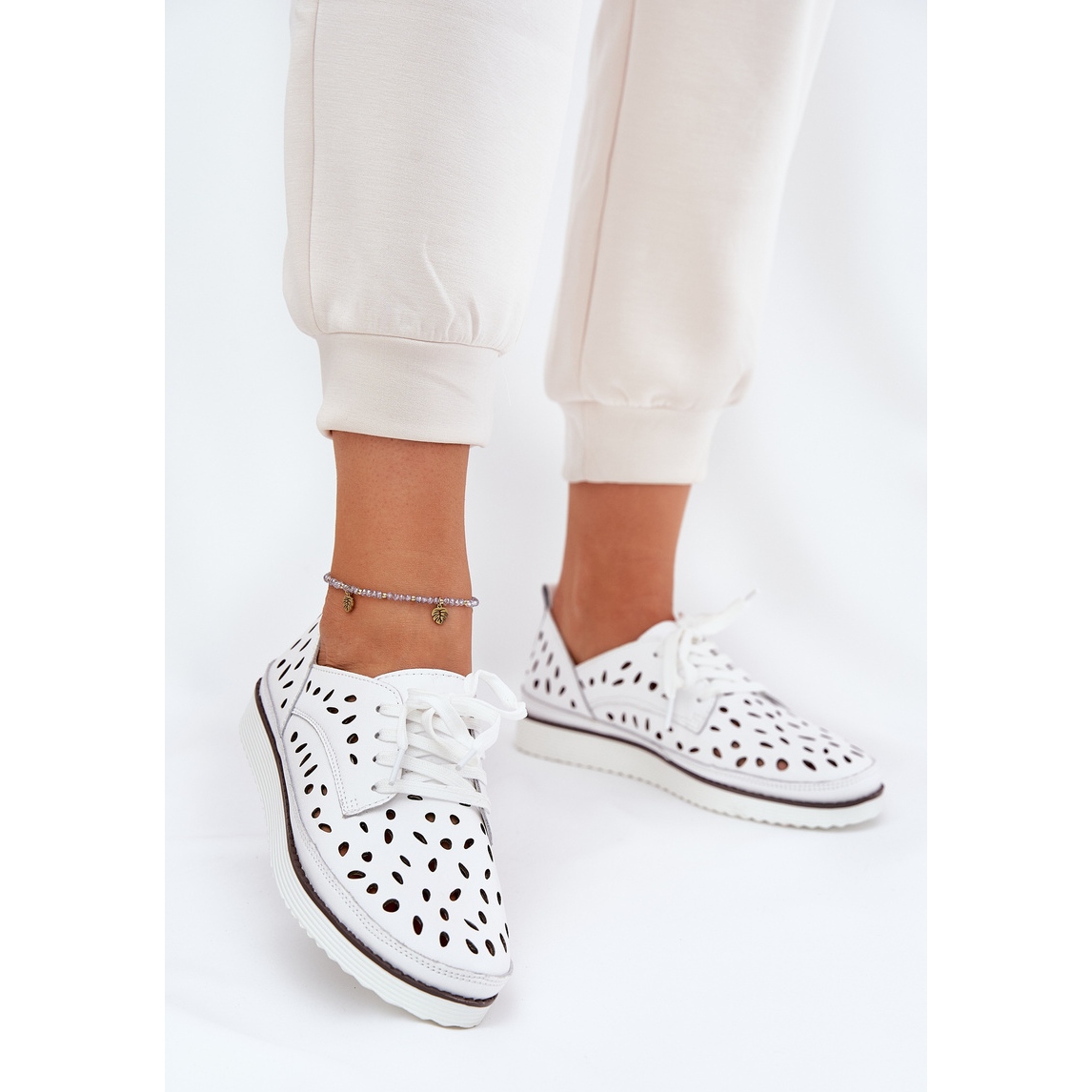 Sapatos de couro feminino S. Barski LR51-610 em uma cor branca elegante é a combinação perfeita de estilo e conforto. Feito de couro natural de alta qualidade, eles não apenas fornecem excelente durabilidade, mas também um design leve, o que os torna confortáveis durante o dia de uso.