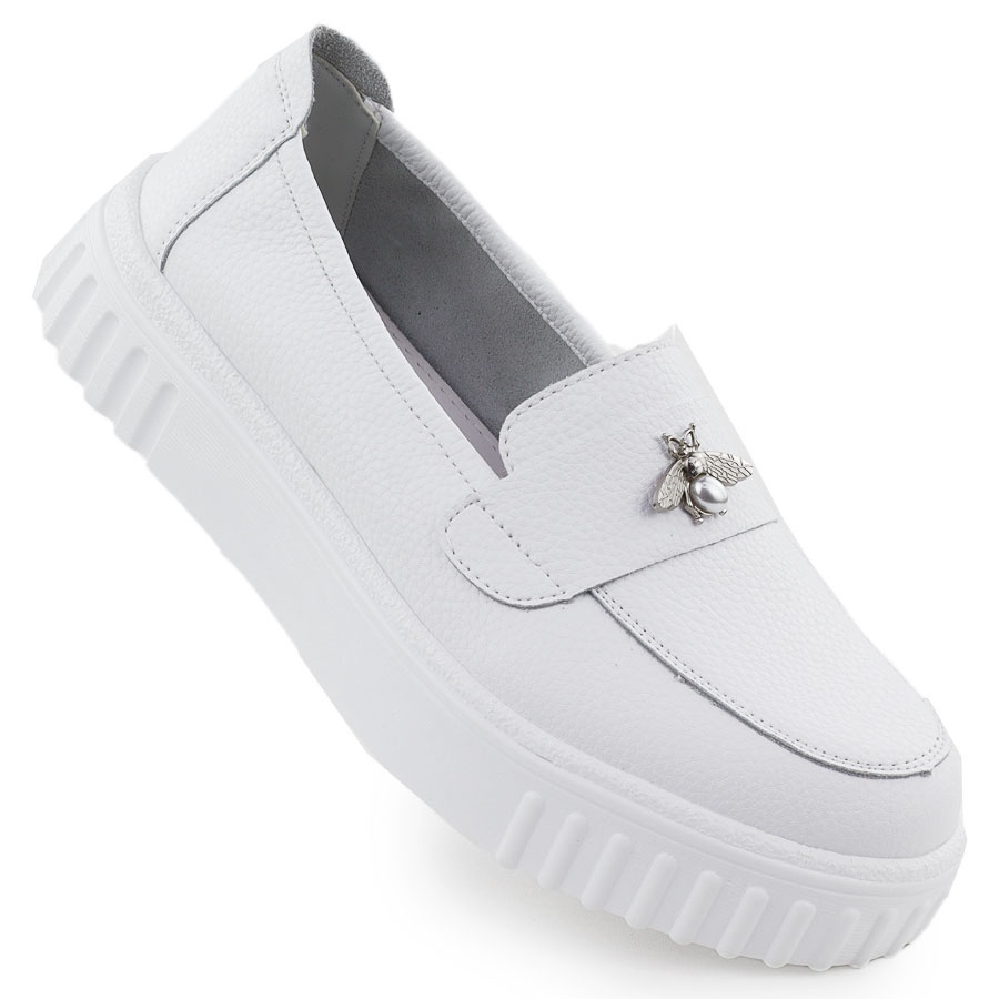 Sapatos de couro feminino, pomotes brancos Vinceza 93204 são uma proposta ideal para mulheres que valorizam o conforto e o estilo. Feitos de couro natural de alta qualidade, esses mocassins elegantes combinam clássicos com design moderno. Suas cores brancas os fazem perfeitamente se encaixam em várias estilizações, de casual a mais elegante.