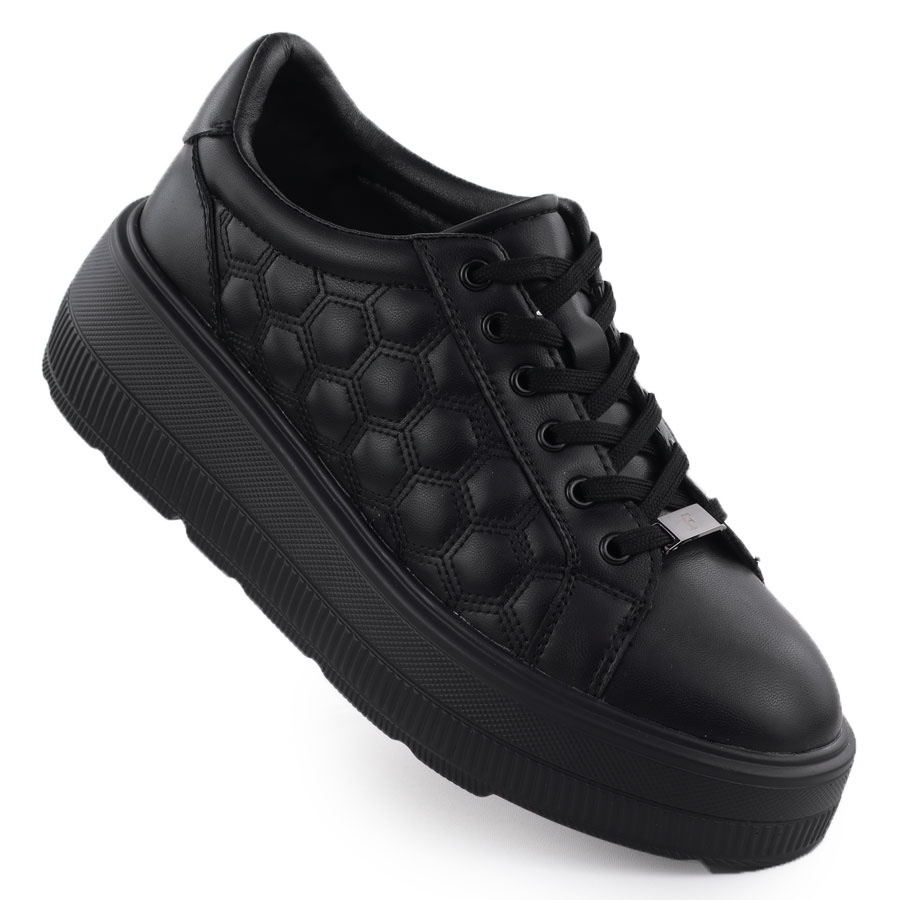 Detalhes: Sapatos de couro feminino tênis acolchoados na plataforma czarne filippo dp7285 preto