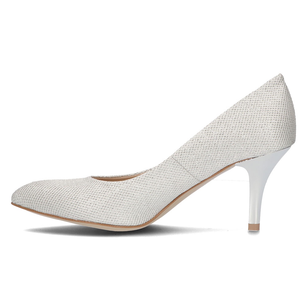 A sola plástica garante durabilidade e estabilidade, e a largura G faz com que os scarpins se ajustem perfeitamente ao pé, oferecendo conforto em cada passada. Graças à elegante cor prateada que reflete maravilhosamente a luz, estes sapatos são um complemento perfeito para qualquer estilo, tanto para o dia a dia como para eventos especiais.