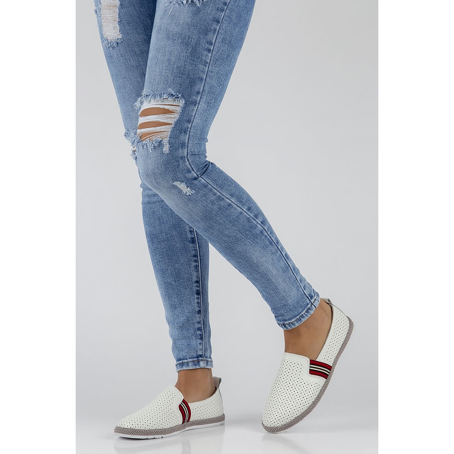 O interior do calçado é revestido com couro natural de alta qualidade, o que melhora o conforto e a respirabilidade. Os sapatos são slip-on, o que os torna fáceis de calçar e tirar, e a sua clássica cor branca faz com que se adaptem a qualquer estilo.