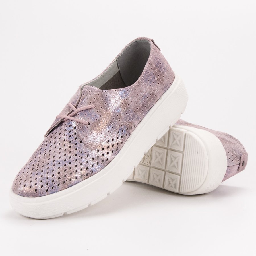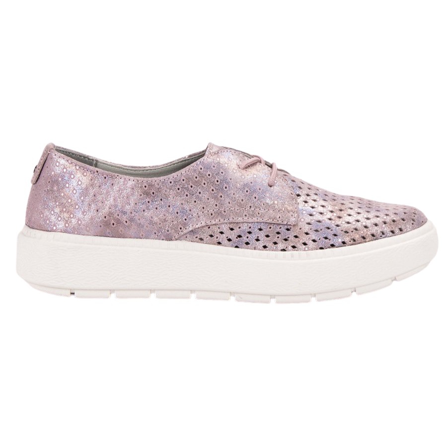 Disponíveis em uma linda combinação rosa e multicolorida, esses modelos se encaixam perfeitamente no estilo casual e moderno, combinando perfeitamente com os looks de primavera e verão. Graças ao padrão vazado e à falta de salto, serão a solução ideal para o uso diário - para o trabalho, para um passeio ou para reuniões de amigos.