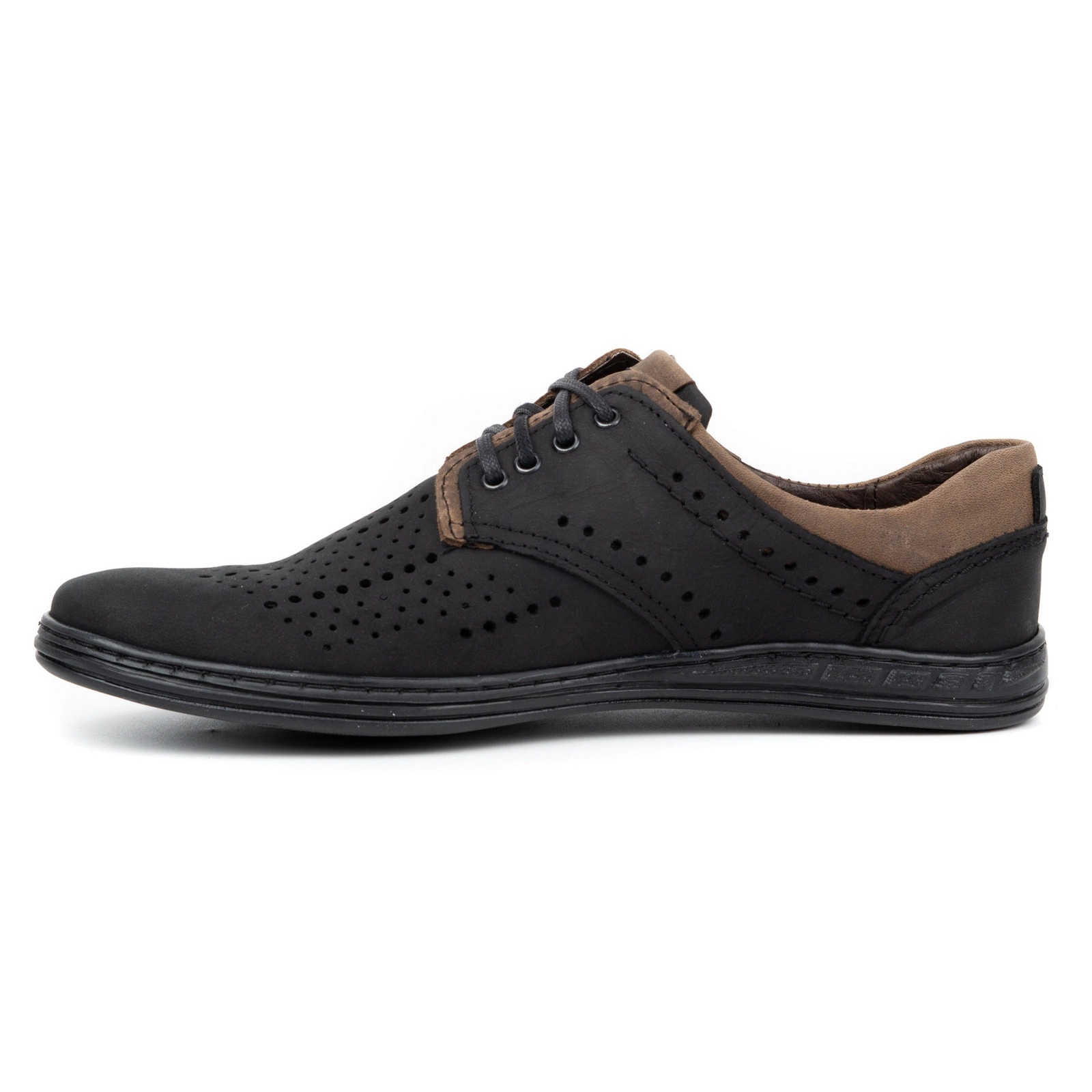 Polbut 402 - sapatos de couro masculino para o verão (preto com detalhes em marrom)
