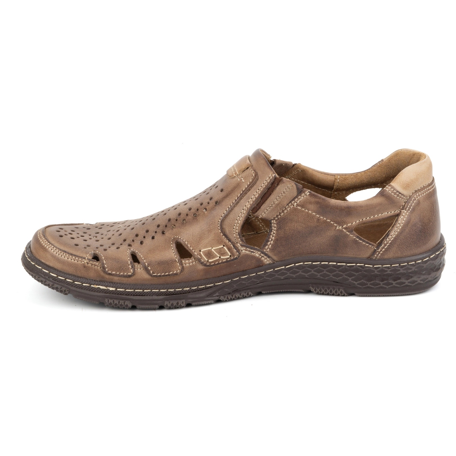Detalhes: Joker Sapatos de couro masculinos de verão, deslizantes marrom 500J