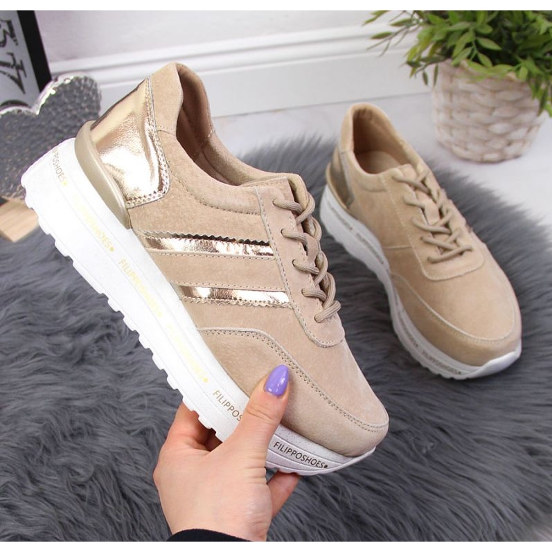 O elegante tênis feminino Filippo em Paw328b combina uma forma clássica com um personagem elegante e um pouco esportivo. Couro natural e confortável, plataforma de 4 cm garante o conforto o dia todo, e a cor bege universal funcionará em estilos casuais e mais elegantes.