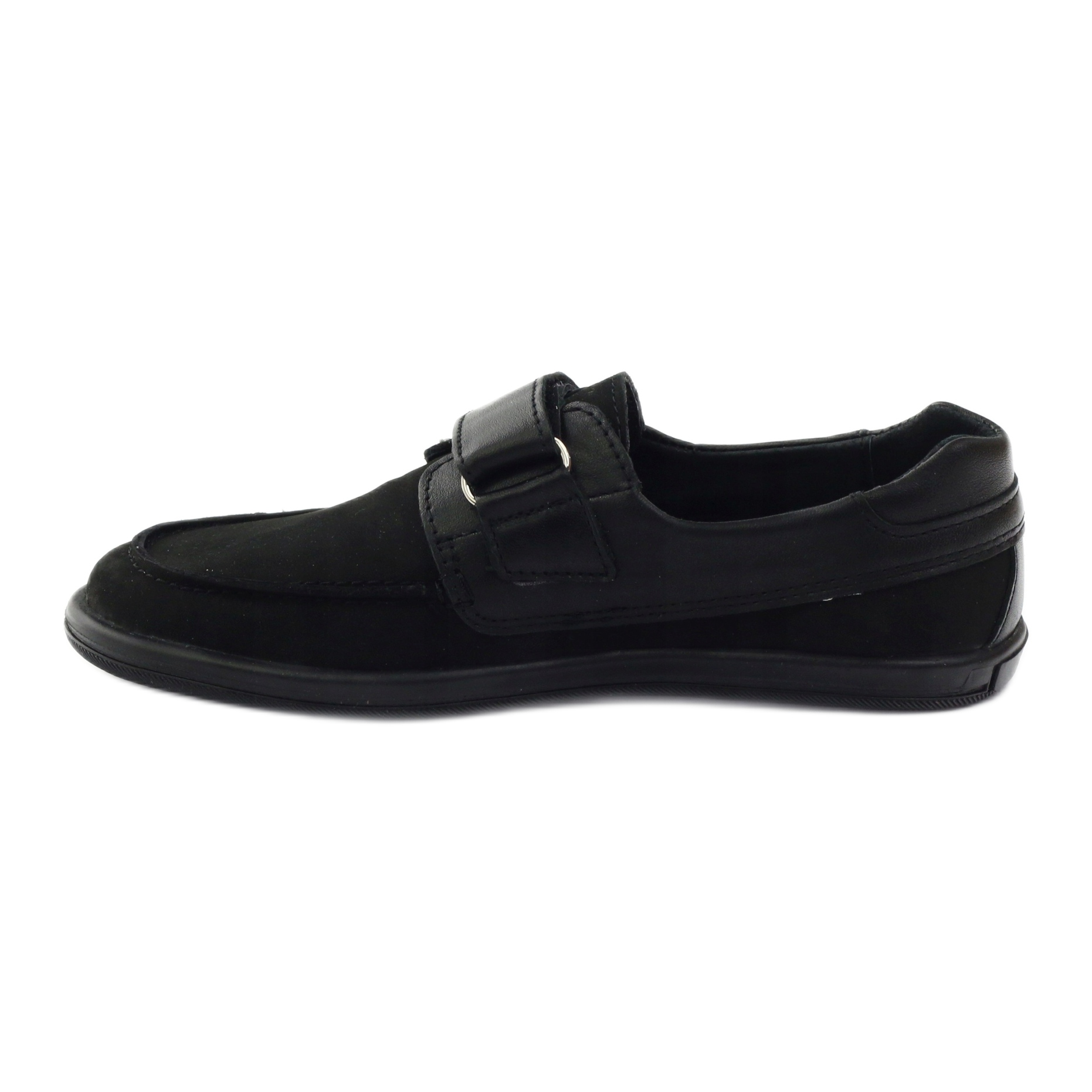 Mocassins clássicos para meninos confeccionados em couro natural nobuck macio na cor preta universal. O modelo 4249 combina conforto e durabilidade - fecho com velcro para ajuste rápido, salto rígido para estabilizar o pé. Todo o interior do calçado é forrado com couro natural e a palmilha em couro perfilado antibacteriano aumenta o conforto de uso. A sola em borracha térmica garante boa aderência em diversas superfícies - perfeita para os dias mais frios.