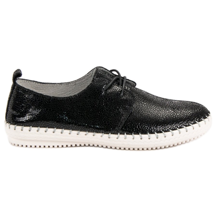 Este modelo distingue-se pela sua superfície elegante, que lembra a pele de cobra, o que lhe confere um carácter único. Confeccionados em couro natural de alta qualidade, os calçados garantem durabilidade e conforto em cada passo. A clássica cor preta faz com que combinem perfeitamente com vários estilos, tanto para o uso diário como para ocasiões mais elegantes.