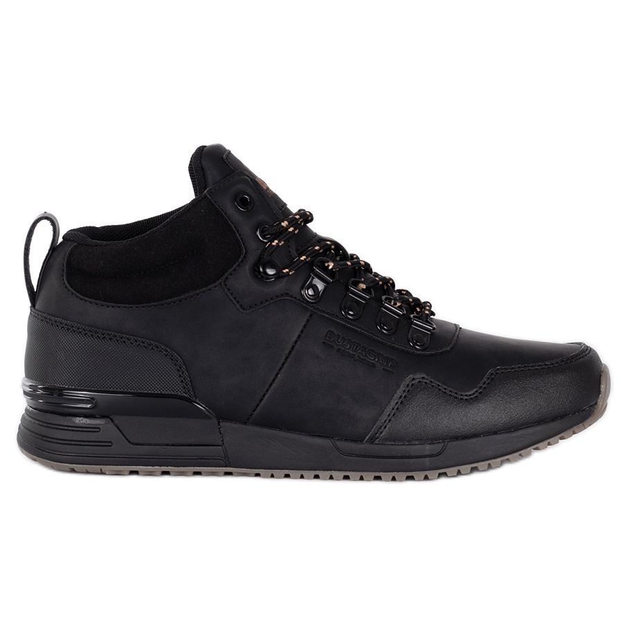 Elegante, durável e Universal - Jogger Pro do Bustagrip são sapatos masculinos altos que combinam estilo urbano com conforto esportivo. Feito de couro natural, em uma cor preta clássica, eles funcionarão tanto em estilizações casuais diárias quanto durante as viagens de outono e inverno.