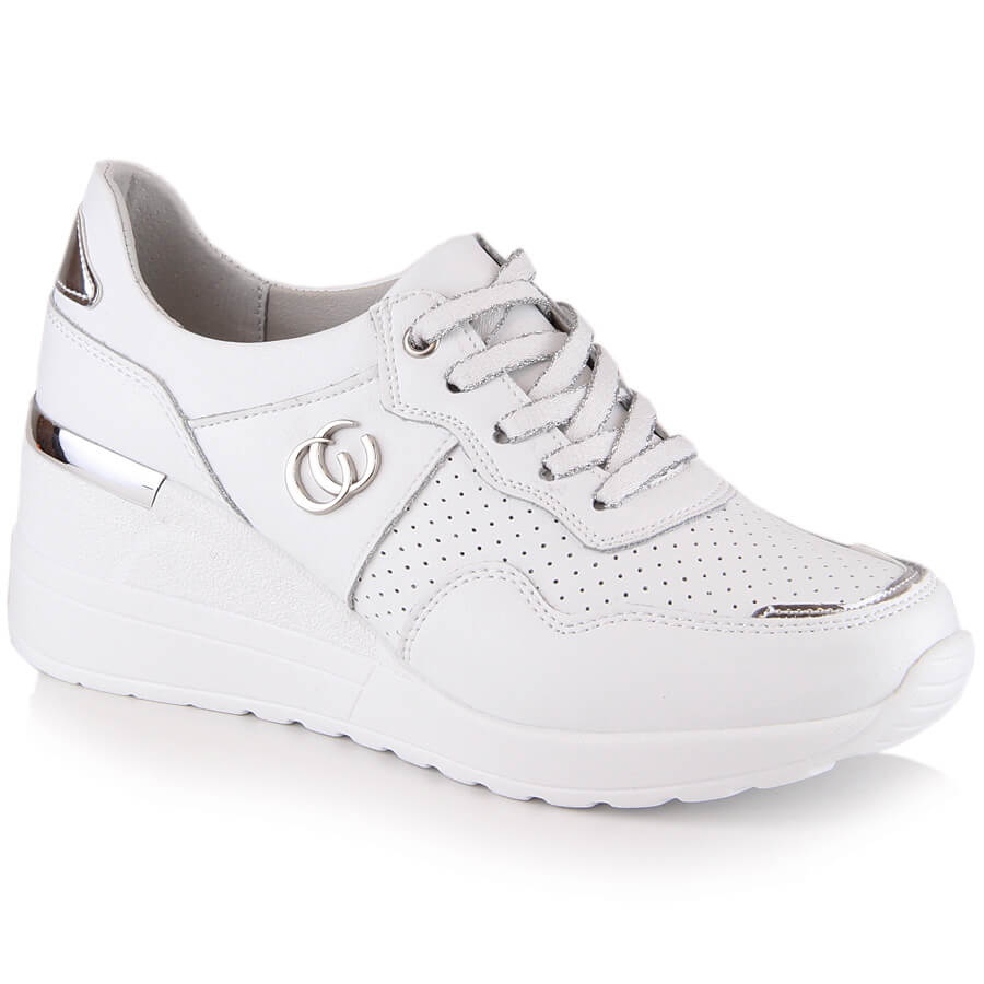 Detalhes: Sapatos de cunha femininos confortáveis de couro tênis branco S.Barski LR29169
