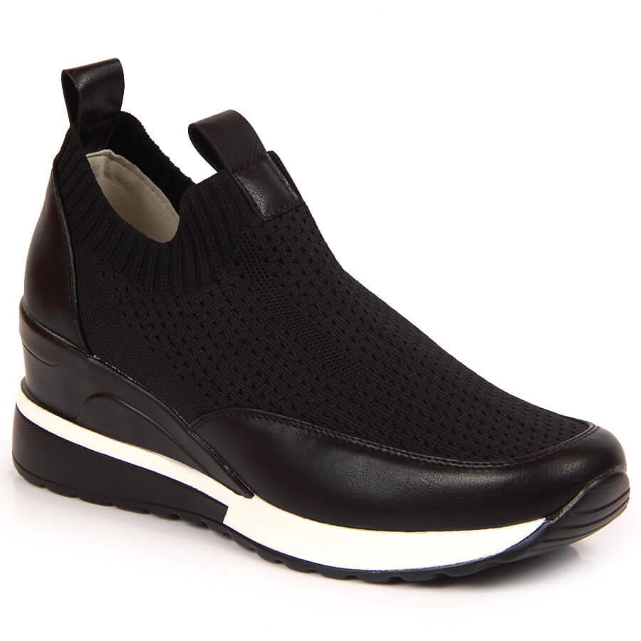 Os sapatos femininos Potocki pretos de cunha são uma excelente escolha para mulheres que valorizam a moda aliada ao conforto. Estes sapatos elegantes e práticos, pensados para o uso diário, complementam perfeitamente o estilo casual e desportivo.