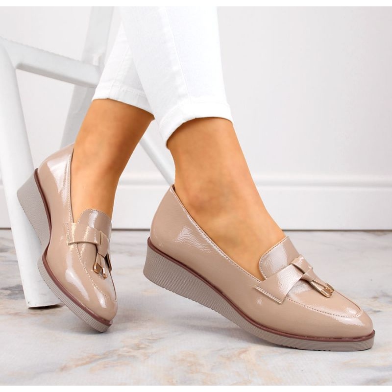 Esse modelo está incorporado a uma cunha confortável de 4 cm de alta, o que garante conforto ideal ao usar e, ao mesmo tempo, adiciona alguns centímetros de altura, modelando a figura. Graças à sua cor bege atemporal, esses sapatos se encaixam em quase todas as estilização feminina, desde conjuntos casuais a visões elegantes.