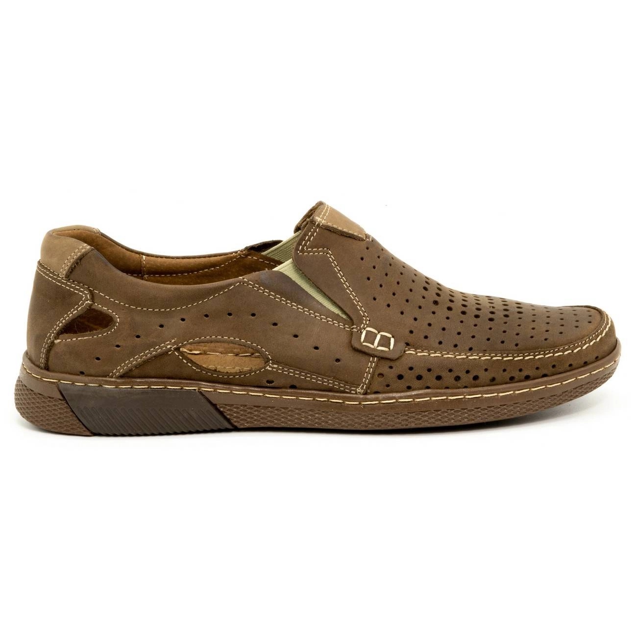 Descubra a elegância do dia a dia com os mocassins masculinos Olivier 937MP em marrom. Estes elegantes sapatos de couro são um elemento indispensável no guarda-roupa de qualquer homem moderno, especialmente nos dias mais quentes. O seu design universal combina perfeitamente com calças mais leves, como as de linho, criando o conjunto perfeito para um passeio de verão.