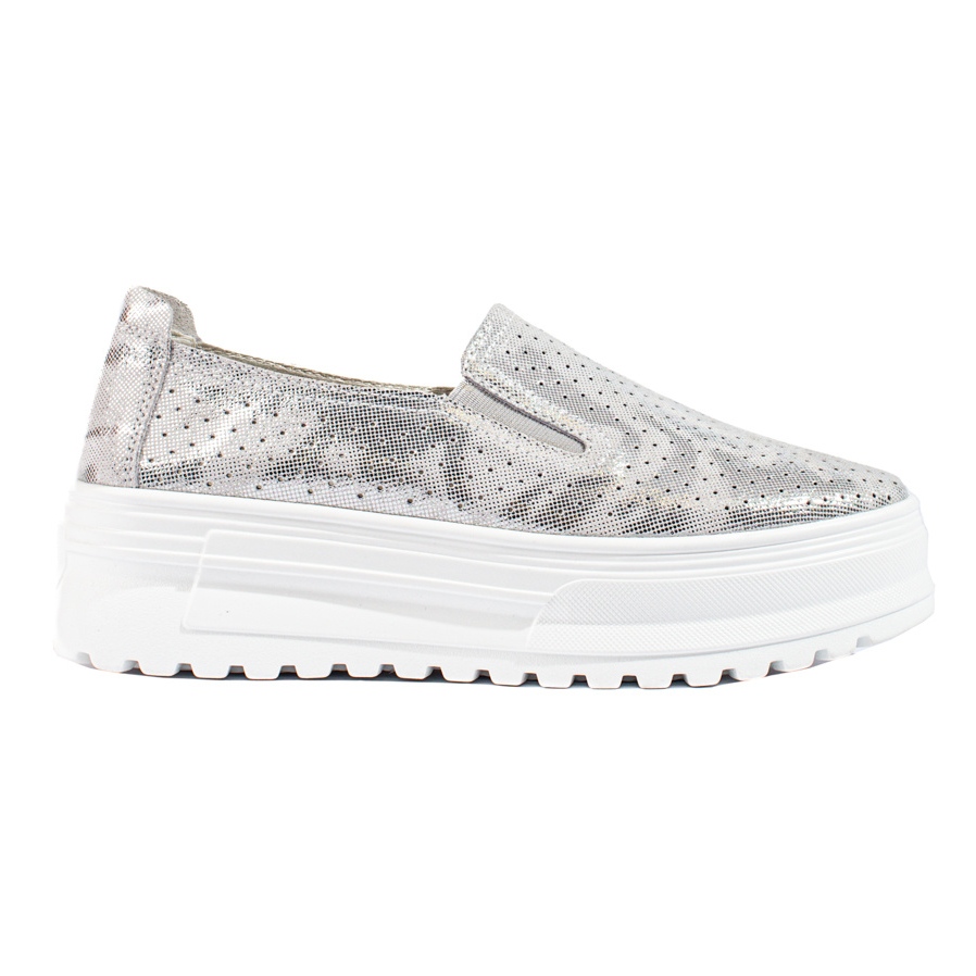 Confortável e elegante - é assim que você pode descrever brevemente os sapatos femininos de couro prateados Shelovet. Esses sapatos casuais são uma ótima opção para mulheres que valorizam a combinação de conforto e design moderno. Os slip ons prateados da SHELOVET são calçados perfeitos para o dia a dia, adequados tanto para esportes quanto para looks mais casuais.