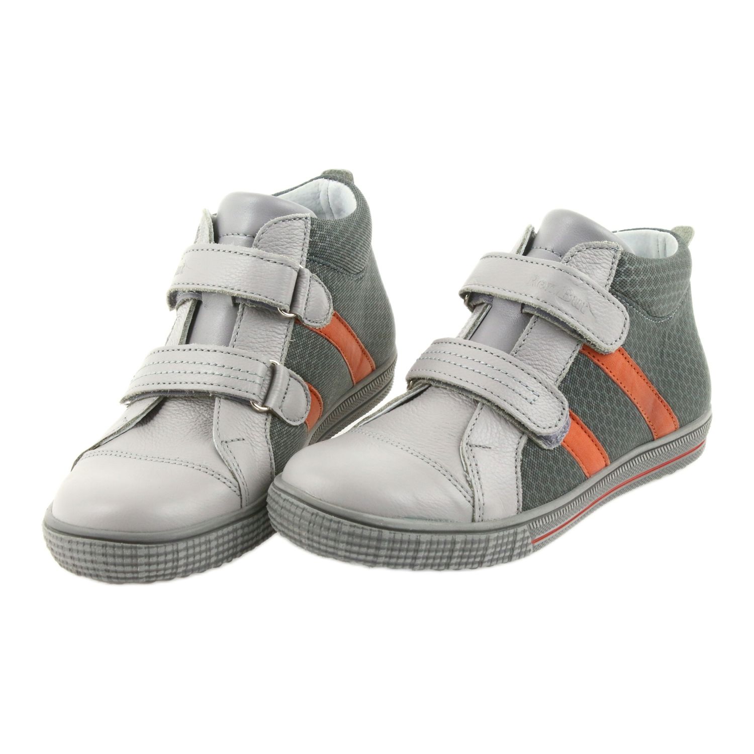 Ren Shoe Boys 4275 Popiel/Orange - calçados sólidos, confortáveis e seguros para crianças ativas. Modelo não isolado, feito de couro natural e material têxtil, equipado com um fechamento prático de velcro e um logotipo do fabricante exibido.