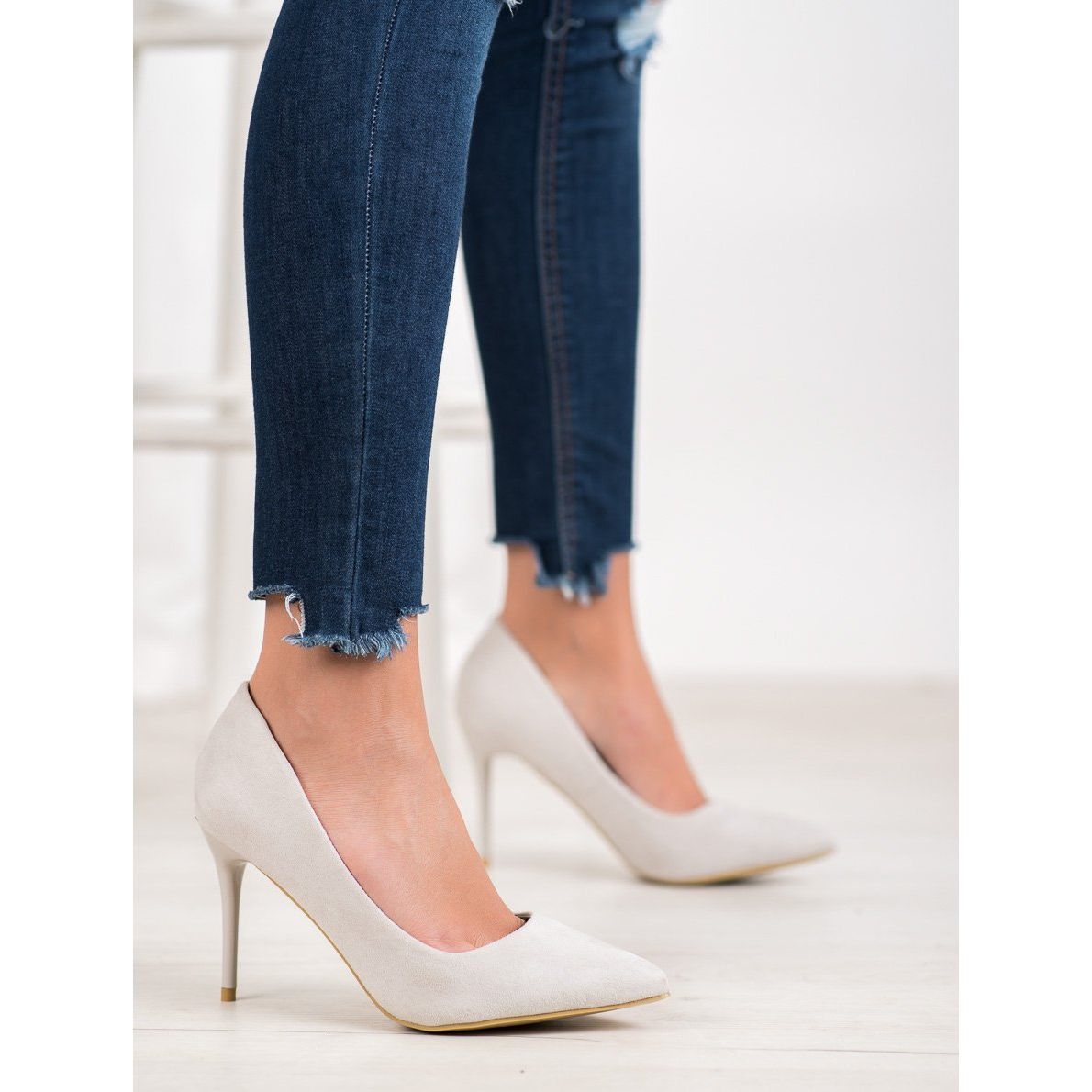 Descubra a elegância e o estilo clássico com os sexy saltos altos SHELOVET cinza. Estes sapatos femininos distinguem-se pelo seu design moderno e confeccionados em pele camurça ecológica, o que os torna a escolha ideal para quem prefere o veganismo e um estilo de vida consciente.