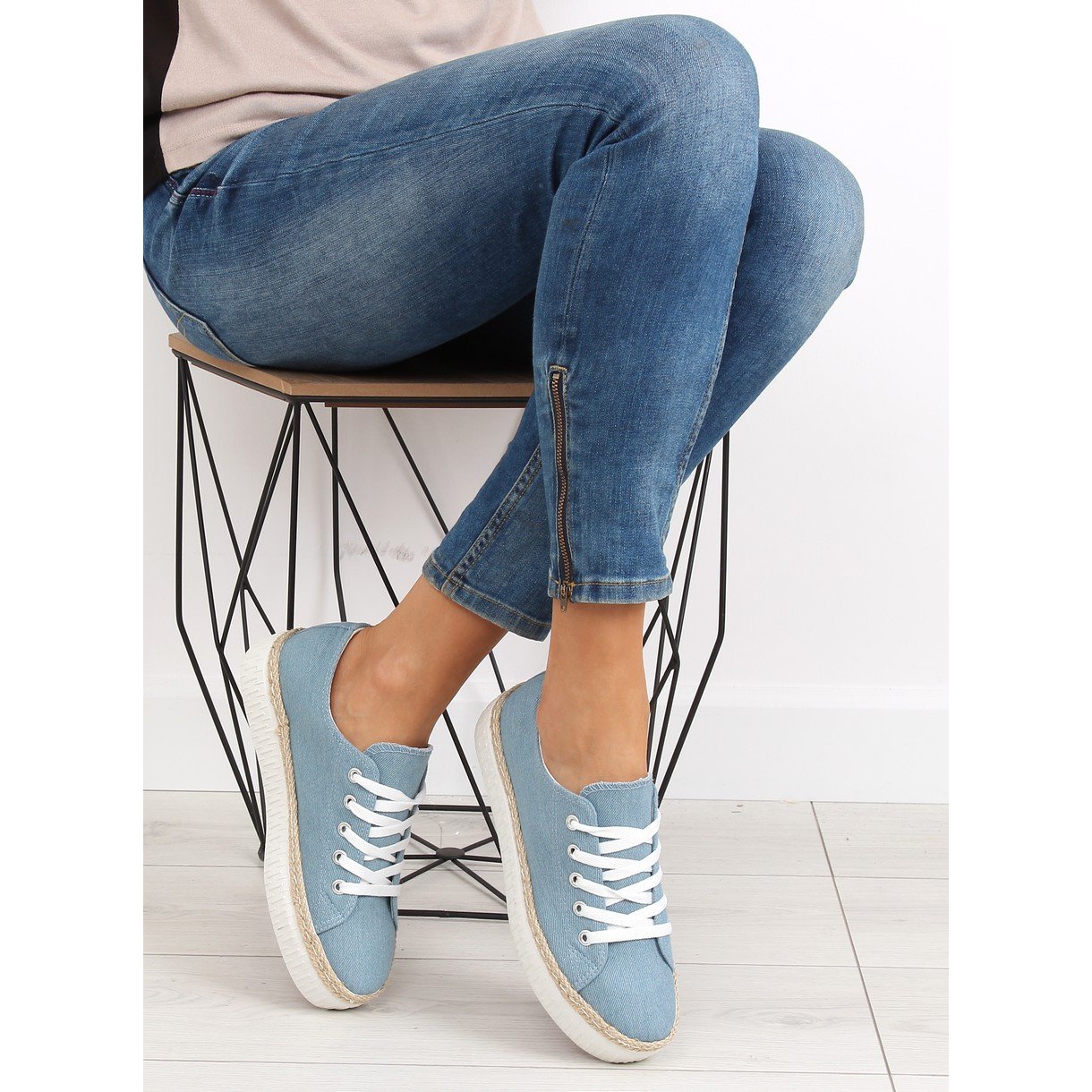 Inna marka Tênis azul K1831602 Jeans com sola alta