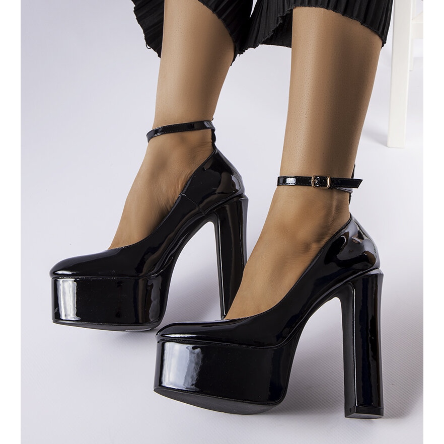 Sapatos pretos envernizados com salto alto Colle - verde expressivo para todas as ocasiões