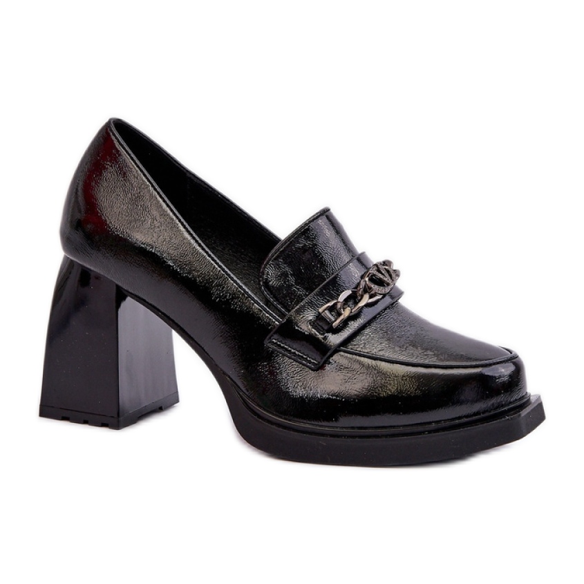 Uma vantagem adicional desse modelo é uma tira decorativa com uma corrente, que dá às bombas uma aparência moderna. Independentemente de você estar planejando um jantar elegante ou uma viagem diária à cidade, as bombas pretas complementarão perfeitamente qualquer estilização.