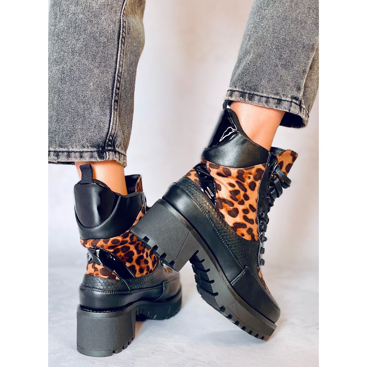 Descubra estilo e conforto únicos graças às botas femininas com sola alta NS067 com motivo de leopardo da moda. Estes botins pretos com atacadores são a escolha perfeita para mulheres que querem se destacar na multidão e seguir as últimas tendências da moda.