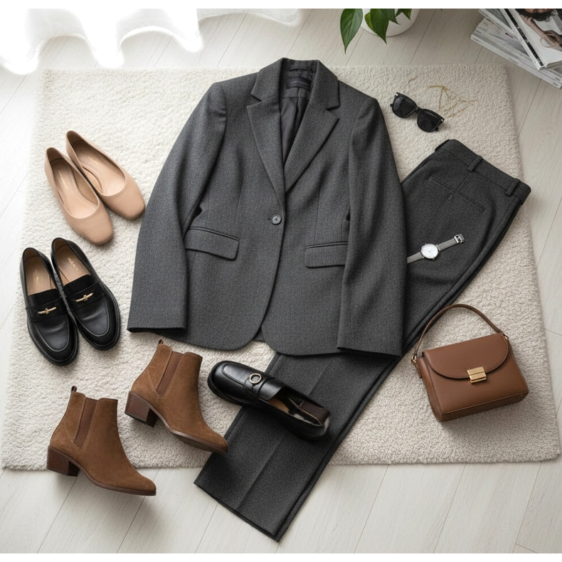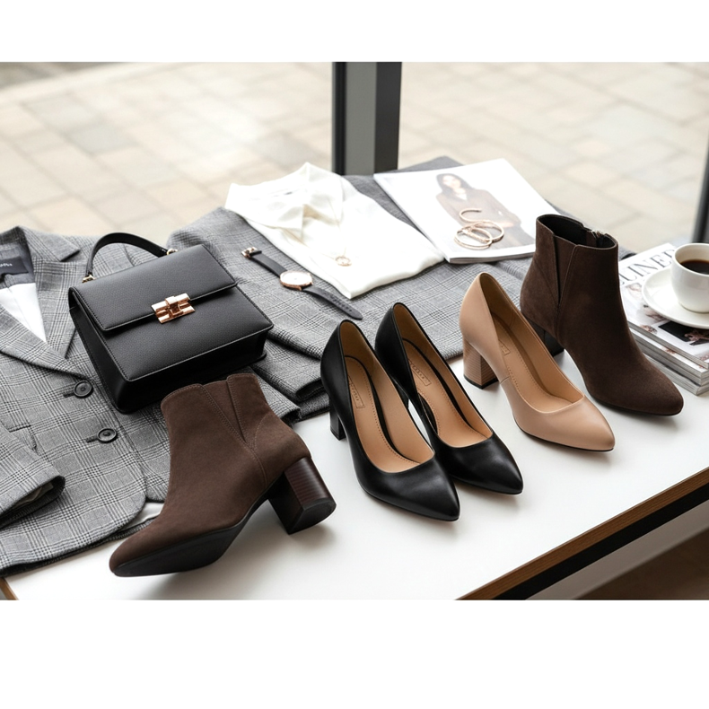 Sapatos em cores neutras – preto, bege ou marrom – também são uma solução segura. Essas cores combinam com a maioria dos estilos e funcionam bem tanto no escritório quanto no dia a dia.