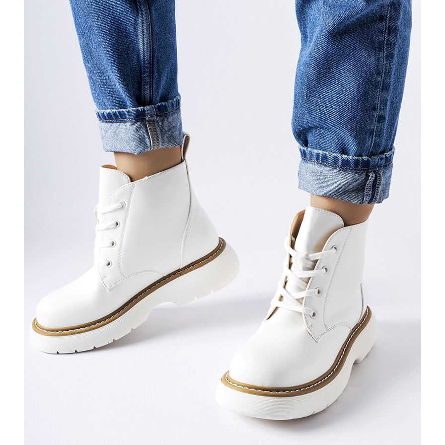 As botas de trabalho brancas sobre plataforma grossa Sacco são uma combinação perfeita de design moderno e conforto que certamente farão as delícias de todas as mulheres que apreciam o estilo fashion. Feitos de couro ecológico de alta qualidade, estes sapatos elegantes oferecem excelente ajuste e conforto de uso. Graças ao cano alto do tornozelo e à plataforma de 5 centímetros, os trabalhadores não só enfatizam a figura, mas também garantem estabilidade a cada passo.